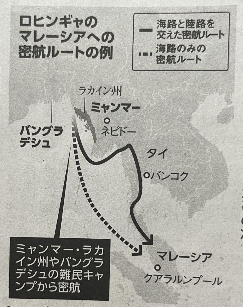 アンダマン海をボートで、北のバングラデシュへ、南のマレーシアへ逃れる